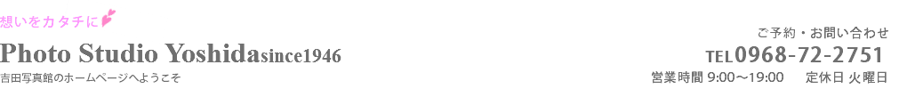 写真館 熊本 熊本県玉名市の吉田写真館、マタニティ・お宮参り・赤ちゃん・七五三・入学・入園・卒業・フレンズ・成人式・ウエディング・家族写真・キッズ・記念日・証明写真・その他撮影などの際はご利用下さい。